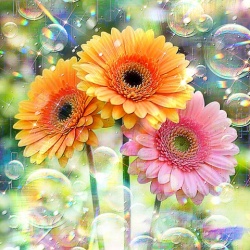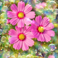 Water, splashes, flowers, and rainbows