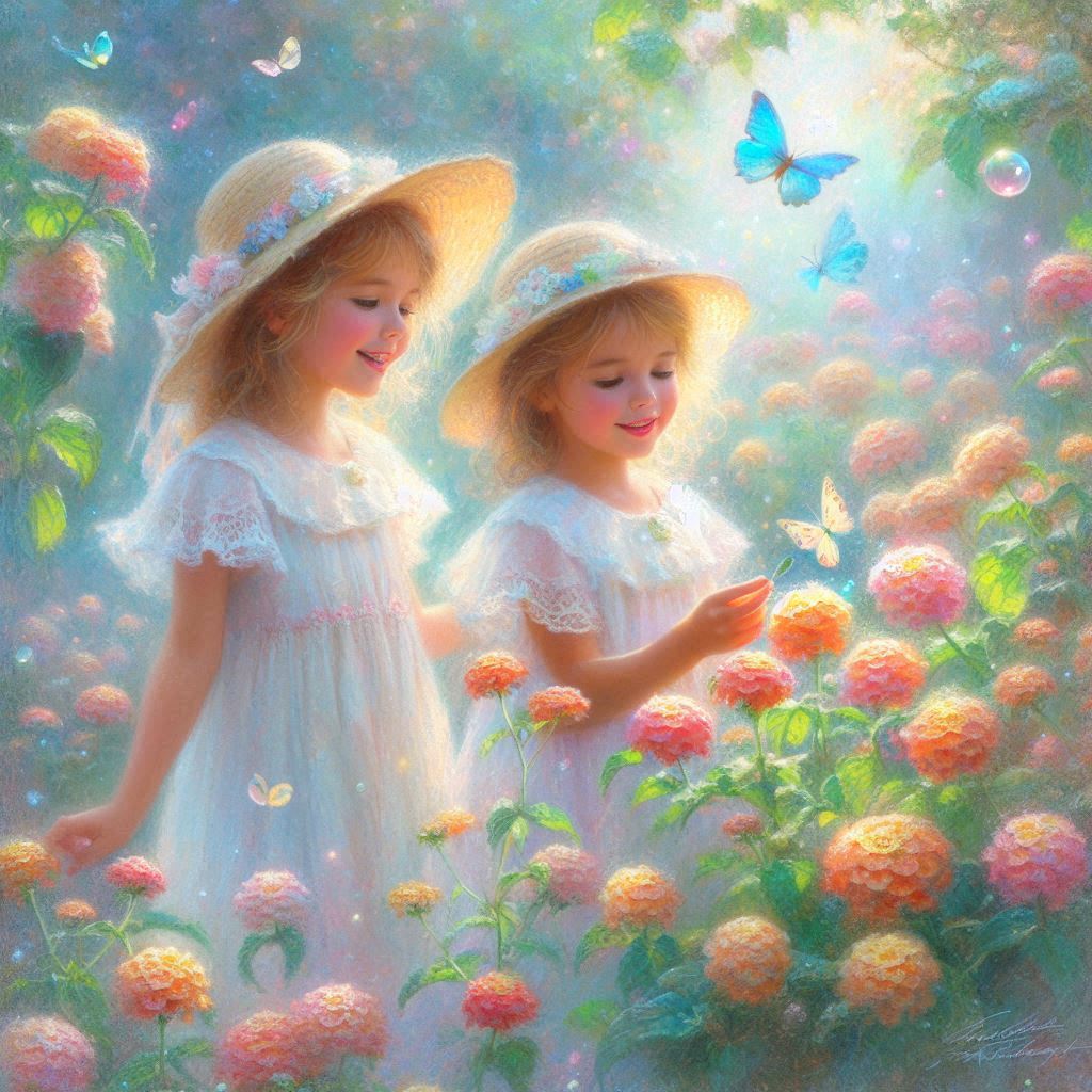 Through the Lantana flowers, this work depicts a family wrapped in happiness as the season changes to summer. The rainbow-colored light and popping soap bubbles are expressed as if they are reflecting the daughters' smiles and innocent hearts. The Lantana flowers symbolize the calm summer days spent with the family and hope for the future, suggesting that the daughters' growth will blossom as the seasons change.
